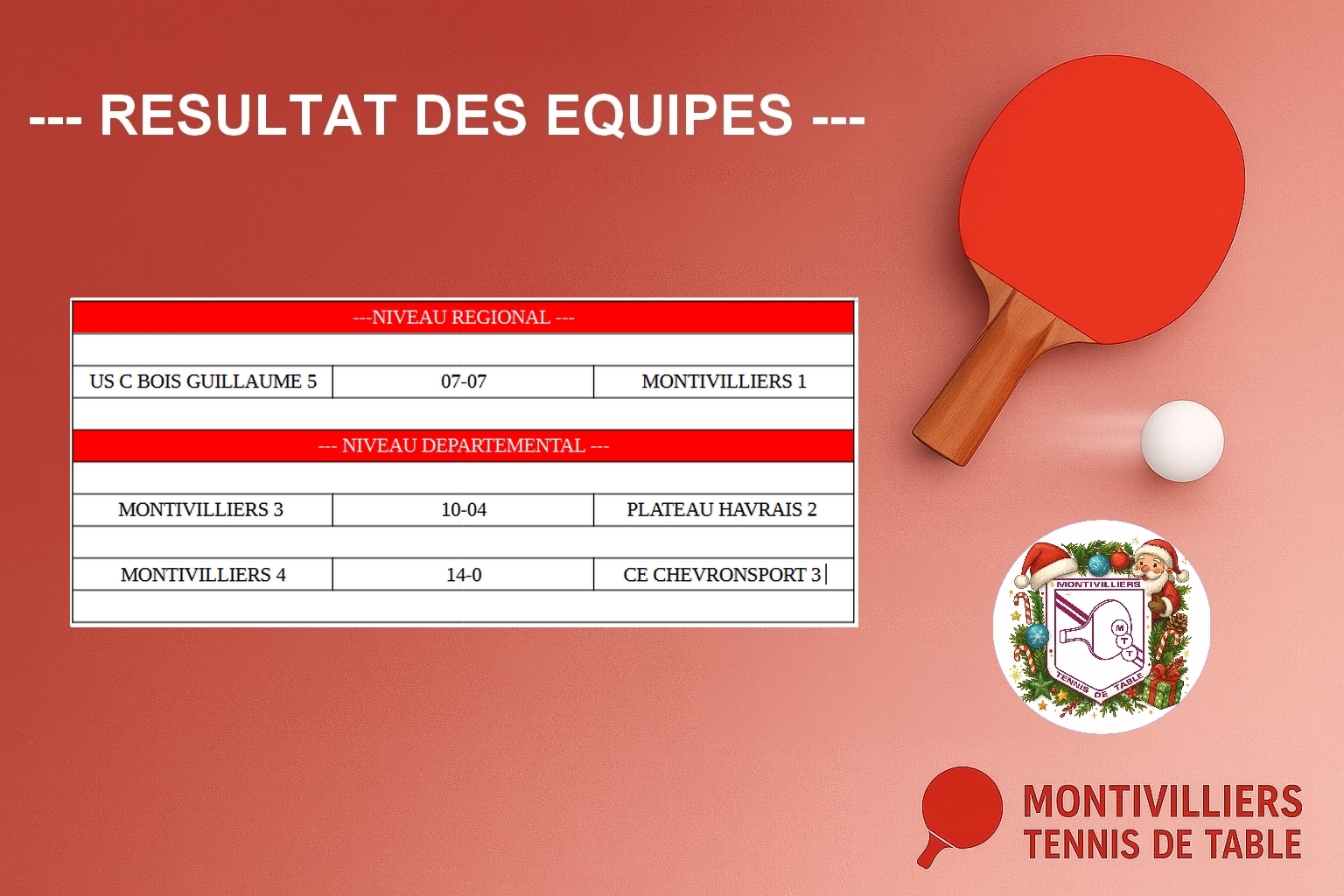 L'équipe MONTIVILLERS4 a gagné face au CE CHEVRONSPORT 3 à domicile (12-02).