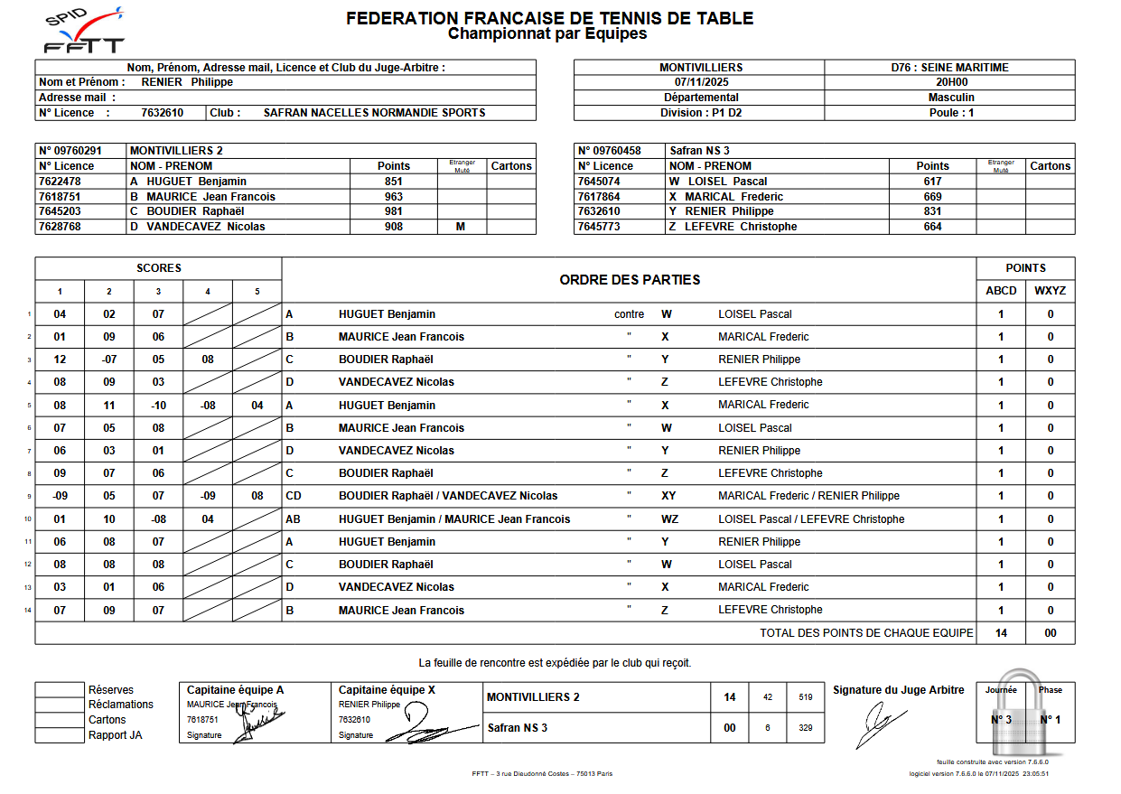 Ce vendredi 7 novembre 2025 l'équipe MONTIVILLIERS 2 recevait pour sa 3eme journée de championnat l'équipe de Safran NS3 .