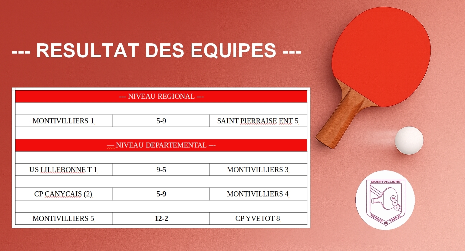 L'équipe MONTIVILLERS4 a gagné face au CP CANYCAIS (2) à l'extérieur (09-05).