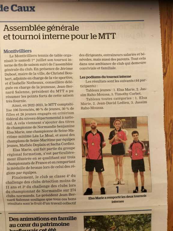 Article presse du courrier Cauchois du vendredi 07 Juillet Merci à Mr Laurent Leprevost pour cet article de notre tournoi et de notre assemblée générale